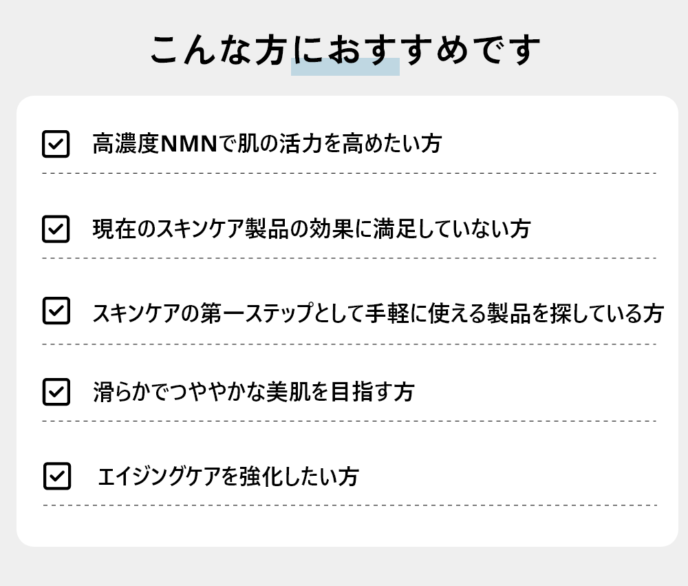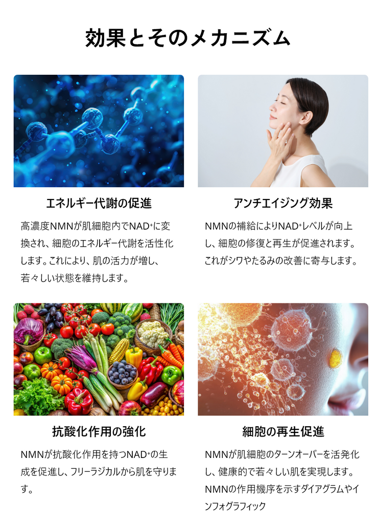 高濃度NMN配合のこの製品で、内側から若々しい肌を実感しませんか?